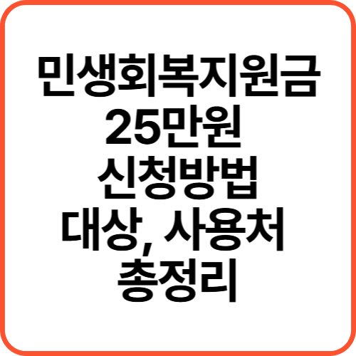 2025년, 정부는 고물가·고금리에 시달리는 서민경제 안정을 위해 '민생회복 지원금 25만원'을 시행하고 있습니다.